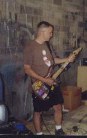 So, here's James... He pisses people off when trying to be funny; he drinks too much on a regular basis; and, he writes some of the most disgusting, perverted lyrics since 2 Live Crew was still in business, back in the late 80's... He likes being onstage most of all, and thinks it's pretty damn funny, watching everyone's faces in the crowd as they sit there, listening to him go off on Lubbock radio, pop-music teen queenies and poking fun at 80's metal... "You know, sometimes I feel like people actually think we're gonna' play that shit all the way through at times"... Says James. "We go off on that shit, cuz' that's what we all used to get into, back in the day, but really, most of those bands are crap now, so, we just play their old stuff, partly for remembrance, but, mostly for a laugh." "I think it's funny to watch these old-school head-bangers start getting into us when we open with something like that, and then just rip right into one of our originals, which isn't even CLOSE to being metal..." " They sort of just give us this (you bastard) look... It's really funny." James loves to play crap equipment as well. "It all boils down to being able to throw this piece of crap, when I don't like what I'm doing". "If I played an $8,000.00 Gibson, I'd feel sort-of guilty when that happens." "Also, too many punk bands get all popular & shit, and then upgrade to the most outrageously expensive shit you can imagine..." "I will always play P.O.S. equipment, not to just be able to throw it around, but, you can make ANY equipment sound the way you want, you don't have to spend thousands of dollars, just to make you sound decent." " Plus, I hate the Marshall sound. I think alot of these equipment companies have blown so much smoke up people's asses for so long, alot of musicians' feel that they just HAVE to play those brands, or noone will accept them as real musicians..."
